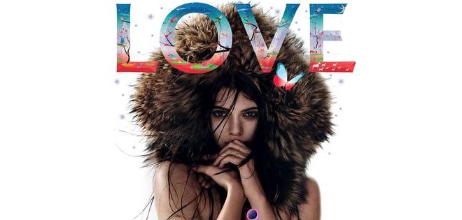 La revista Love seleccionó a Kendall Jenner para la portada de su próximo número, donde la estrella de tv posó con un sombrero de piel y en topless, tapándose los pechos únicamente con las manos.
