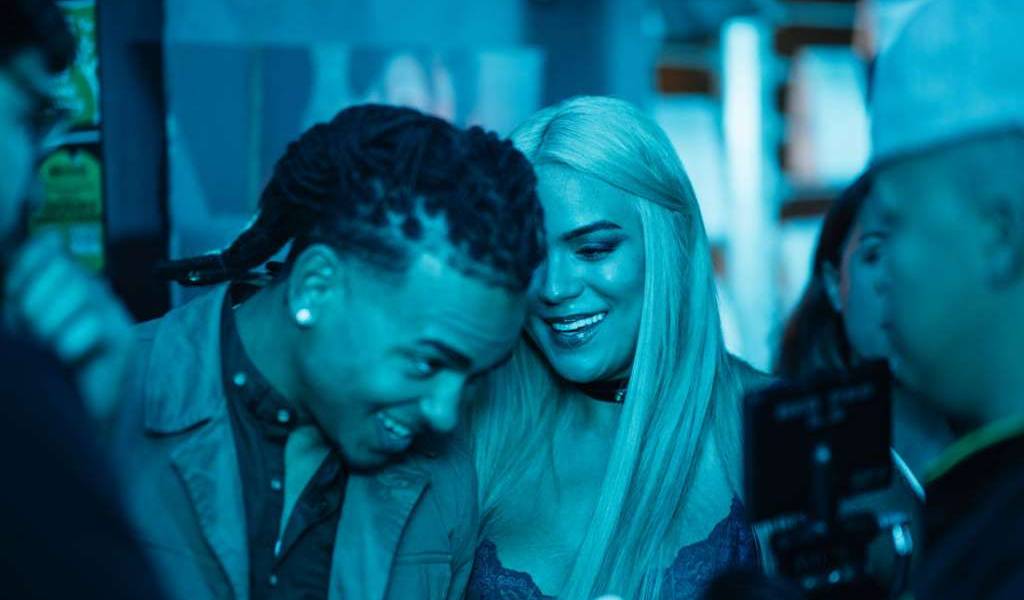 Imagen de archivo que muestra a Ozuna y Karol G en el rodaje del video