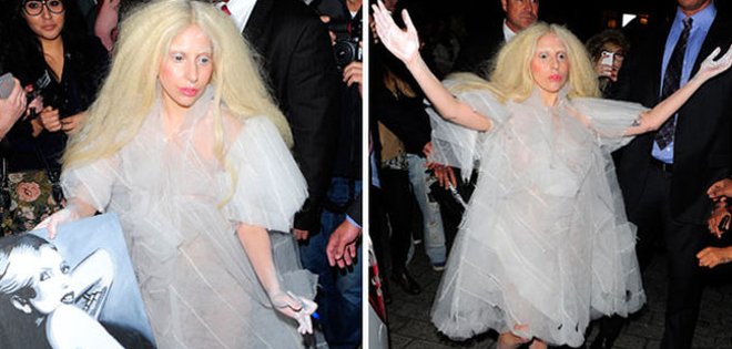 Un largo vestido blanco, una peluca y un terrorífico maquillaje caracterizaban a la cantante. Pero lo mejor de la actuación estaba por llegar. En mitad de la canción, Lady Gaga se quitó el vestido quedándose completamente desnuda ante la incredulidad de sus fans.