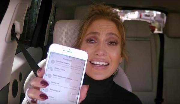 James Corden le pide el teléfono a Jennifer López y escribe el siguiente mensaje a Leonardo DiCaprio: “Hola, bebé. Tengo ganas de soltarme un poco. ¿Alguna sugerencia? Cuéntame”. Dicho texto causó asombro en la cantante, quien le debe unas explicaciones al protagonista de "Titanic" y "The Aviator".