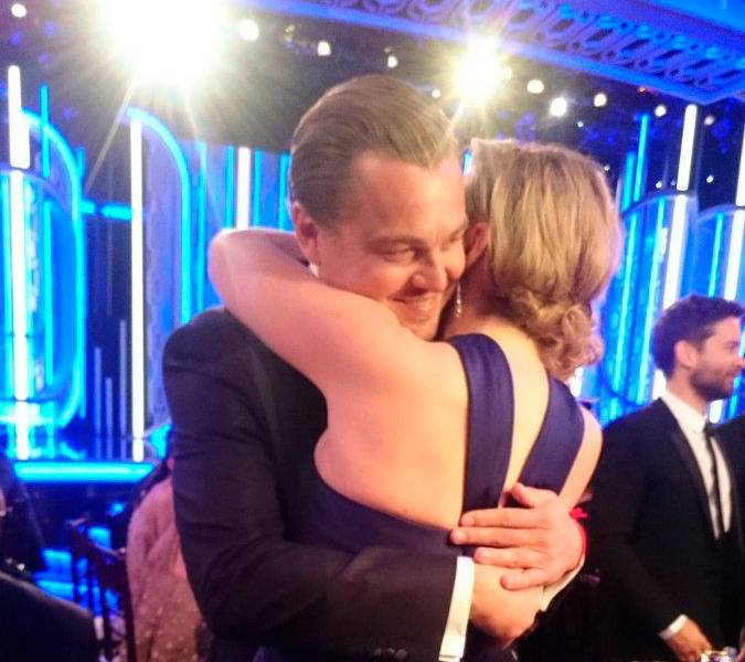 Ambos actores estaban nominados a los Globos de Oro. Al verse, se reencontraron y se abrazaron, como si tratara de una de las escenas de la romántica cinta de James Cameron.