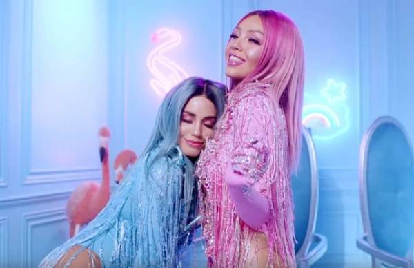 Siendo iconos de la moda, Thalía y Lali lucen llamativos atuendos, retratando situaciones divertidas y bailando al ritmo pop-urbano.