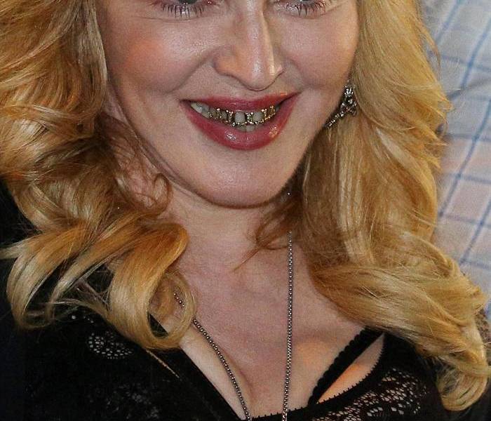 Madonna muestra sus dientes bañados en oro y diamantes