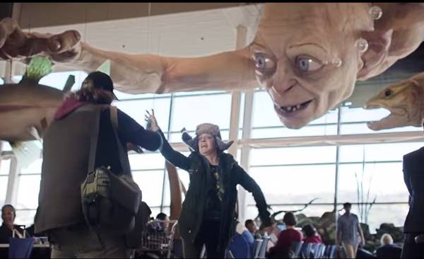 En la llamativa publicidad, dos fanáticos de las películas corren a tomar su vuelo, cuando ¡sorpresa! Elijah Wood, el mismísimo "Frodo", está en el asiento de al lado. De inmediato, las azafatas se convierten en elfas y ambos son transportados al mágico mundo de la Tierra Media.