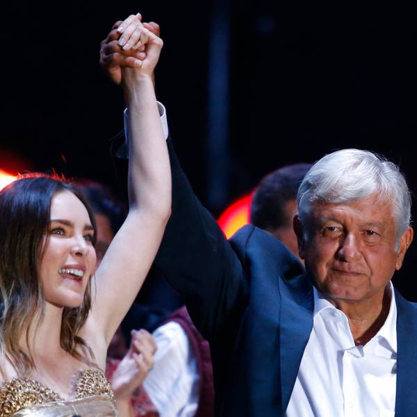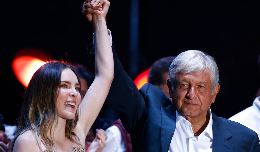 Este año, durante actos de campaña, Belinda repartió mercancía con acrónimos de la campaña del presidente electo Andrés Manuel López Obrador.