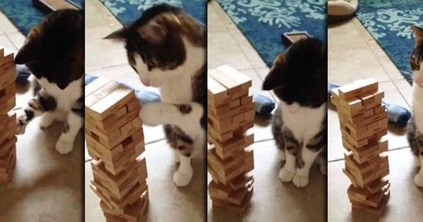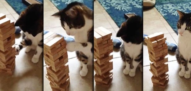 Hoy el día los gatos dominan las búsquedas en Internet por sus graciosas y hasta heróicas participaciones. Pero también son expertos jugando Jenga. Al menos así lo demuestra Moe, felino de 8 años de edad, de propiedad del estadounidense Alan Palesko, quien apenas supo de las habilidades de su mascota, lo grabó y subió su video a Youtube.