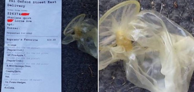 La canadiense Charlene Quirk, al ordenar dos pizzas en su restaurante favorito, descubrió que llegaron con un condón.