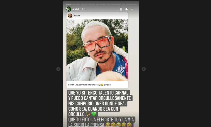 "Encuentra las diferencias", decía el post que posteriormente estalló en un cruce de historias de Instagram y publicaciones en las que ambos se respondían, e incluso Nodal afirmó que arremetería al colombiano con una composición.