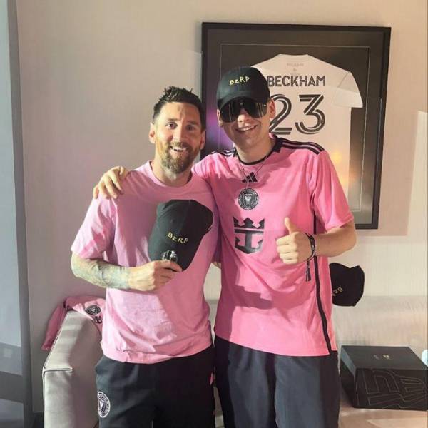 Las cámaras lo enfocaron mientras lucía una camiseta rosa y negra del Inter Miami, el equipo de su compatriota Lionel Messi, dejando al descubierto su rostro, algo que rara vez se había visto antes.