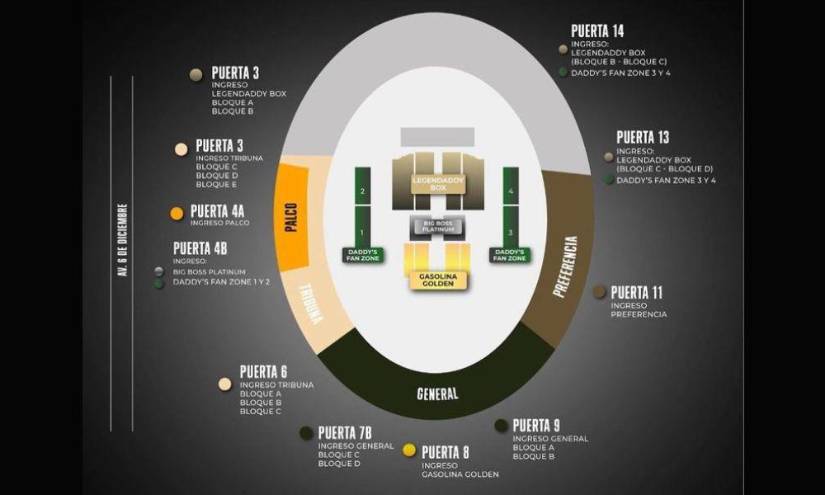 El perfil de Feel The Tickets publicó con respecto a la entrada de cada localidad. A diferencia del evento en Guayaquil, no existirá un solo ingreso principal para todas las secciones.