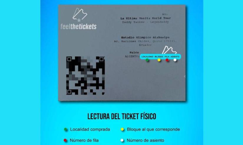 Al igual que en la ciudad de Guayaquil, es indispensable llevar consigo el ticket físico del concierto. En él se distribuye la localidad comprada, el bloque al que corresponde, el número de fila y número de asiento.