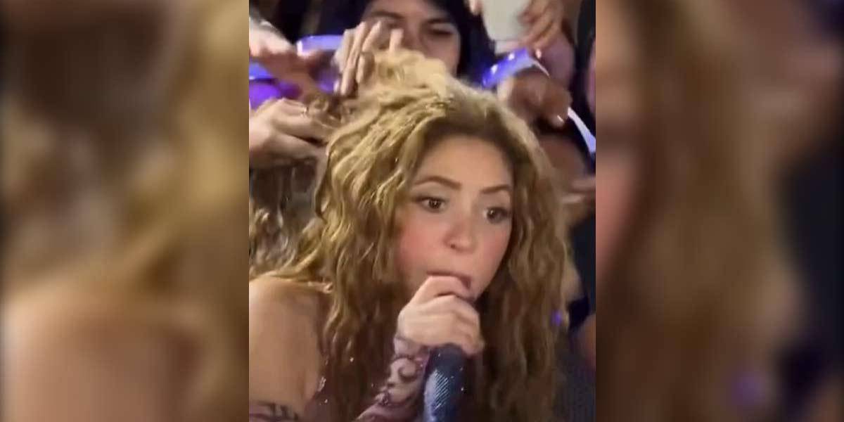 La cantante se trasladó hacia las primeras filas para saludar a quienes estaban más cerca del escenario, gesto que provocó una fuerte reacción del público. Sin embargo, durante ese recorrido ocurrió un episodio inesperado: uno de los fanáticos tomó su cabello mientras interpretaba uno de sus clásicos, acto que sorprendió a la artista antes de continuar con el espectáculo.