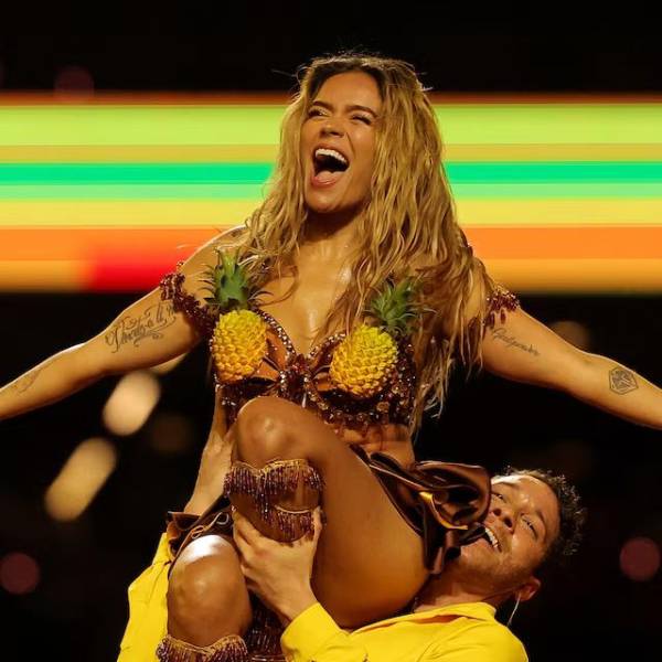 Con un vestuario colorido y un cuerpo de bailarines que acompañó la puesta en escena, la “Bichota” arrancó con Bandida entrenada y cerró con Papasito. La iluminación amarilla y los elementos visuales inspirados en su más reciente producción musical reforzaron el sello personal de la presentación, que recibió elogios inmediatos en redes sociales.