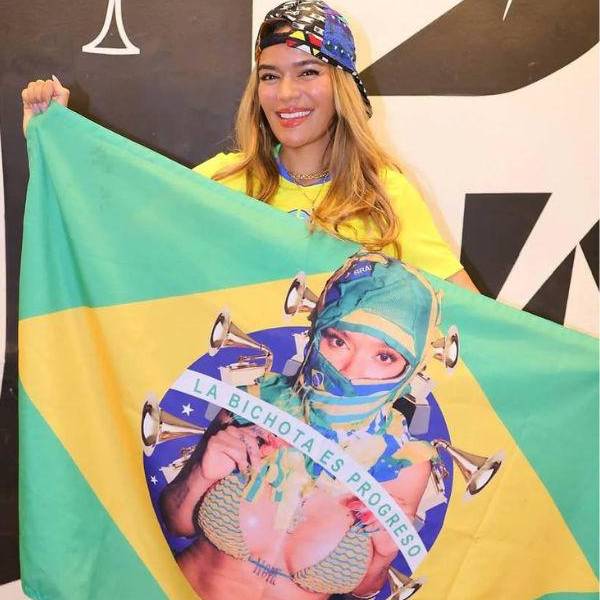 La Bichota no solo compartió con sus seguidores, sino que también se sumergió por completo en la cultura local. Se la vio visitando una feria, posando con la camiseta de la selección brasileña, ondeando una bandera personalizada e incluso recorriendo un tradicional bar paulista.