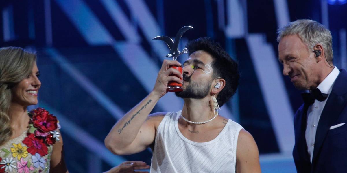 En la parte final de su presentación, Camilo recibió las Gaviotas de Plata y de Oro en reconocimiento a su actuación en Viña del Mar, de la que se despidió cantando 'Índigo' nuevamente con Evaluna.