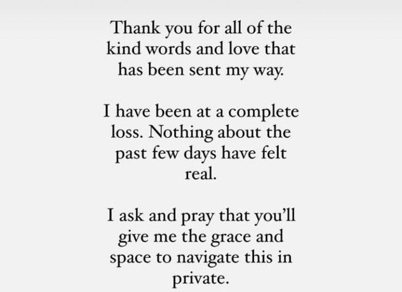 Kate Cassidy comparte, un comunicado en redes sociales pidiendo privacidad, mientras enfrenta esta devastadora pérdida.