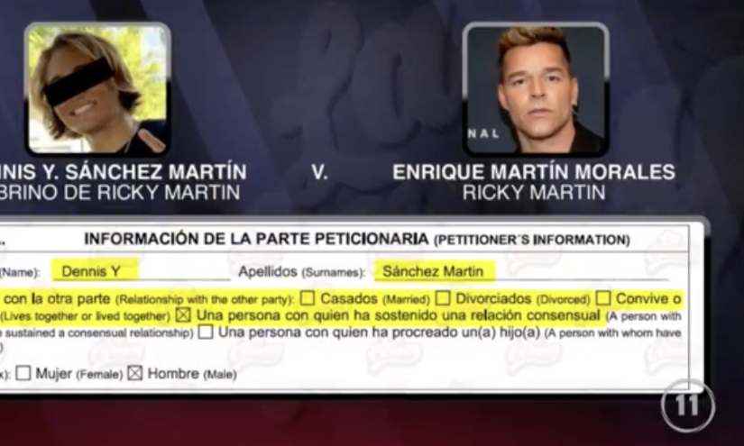 Ricky Martin es parte de una denuncia debido a una supuesta violencia doméstica que el victimario, su sobrino Dennis Yadiel Sánchez Martín, habría sufrido a manos del artista, con el que según él, tuvo una "relación consensuada".