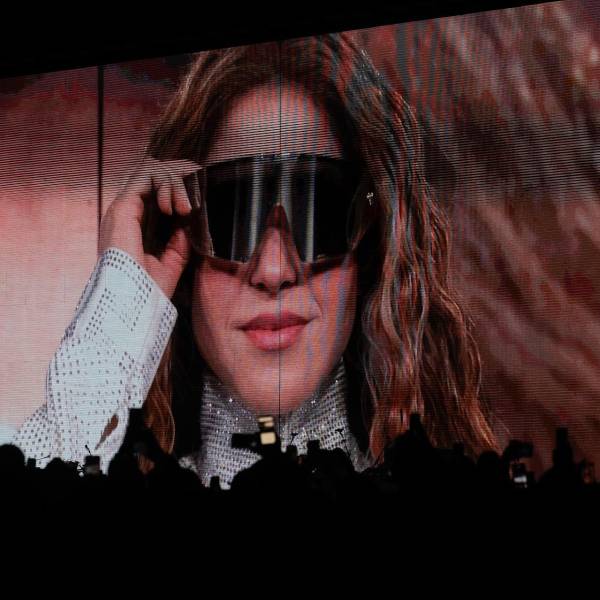 Vista general del rostro de la cantante colombiana Shakira, proyectada en la pantalla gigante. ( )