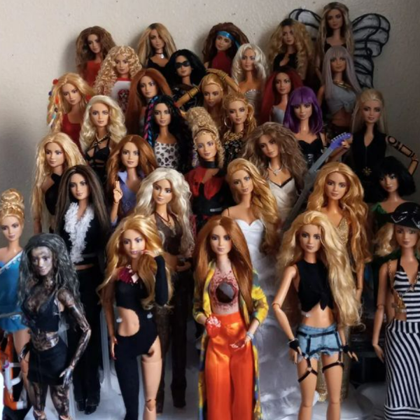 Shakira compartió en sus redes sociales las 30 muñecas del artista Jose Emery, se trata de 'barbies' inspiradas en cada faceta de la cantante colombiana, por lo que se puede ver una que representa el último éxito de 'Monotonía', en 'Loba', 'Te Felicito' o 'La Bicicleta'.