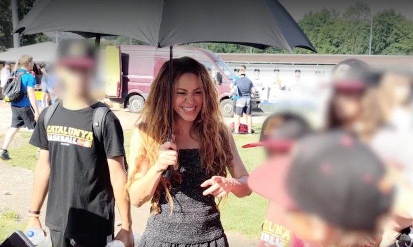 Tanto Shakira como Piqué asistieron al evento por caminos separados. A la cantante se la fotografió sonriente, sujetando un paraguas negro debido al sol y rodeada de niños.