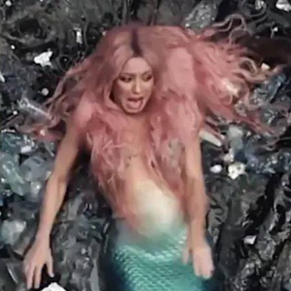 Shakira caracterizada como sirena para la grabación de su más reciente video musical que lleva por título Copa Vacía. ( )