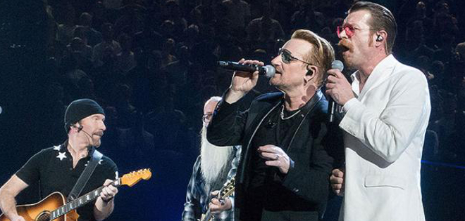 "Gracias, París, ¡Te queremos! Y gracias U2 por darnos esta oportunidad", dijo el líder de Eagles of Death Metal, Jesse Hughes, vestido de blanco inmaculado.