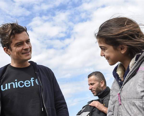 Orlando Bloom, conocido por su encarnación del elfo Legolas en las trilogías de "El Señor de los Anillos" y el "Hobbit", se convirtió en embajador itinerante de UNICEF en octubre de 2009. En abril de 2014 visitó Jordania para reunirse con refugiados sirios.