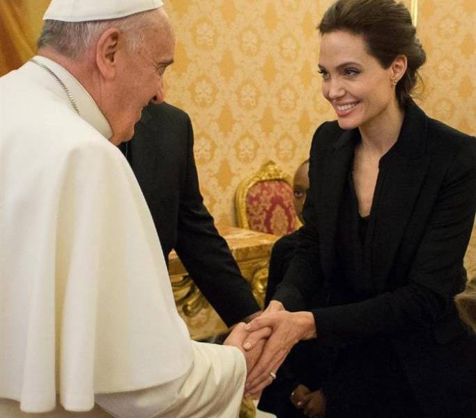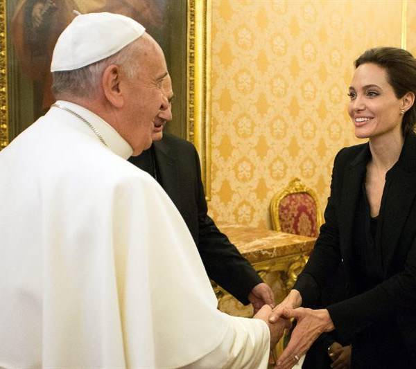 Papa Francisco recibe para un breve saludo a Angelina Jolie