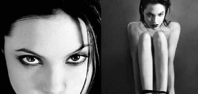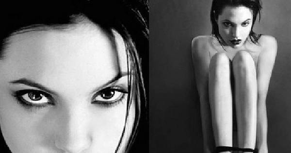 La particular fotografía muestra completamente desnuda a Angelina Jolie cuando tenía 20 años y recién comenzaba su carrera actoral. Está sentada con las rodillas apoyadas en el pecho mientras se toma los pies, que están unidos con un lazo a la altura de los tobillos.
