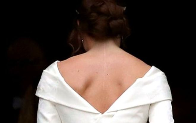 La princesa Eugenia eligió este modelo especialmente para lucir su cicatriz.