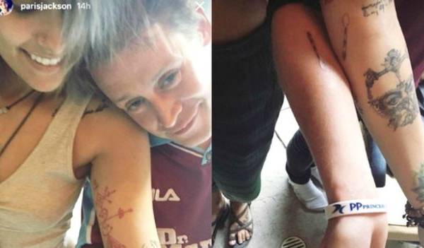 Paris Jackson y Maculay Caulkin mostraron en una foto temporal de Instagram los tatuajes de cucharas que se hicieron en sus brazos.