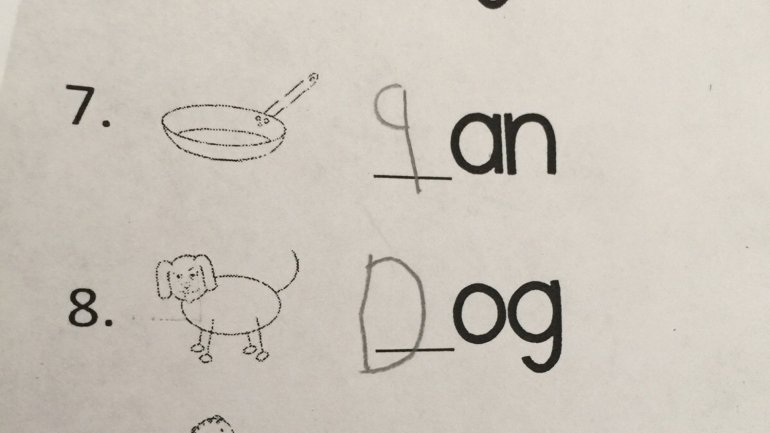 El niño no tuvo problemas para incluir las iniciales de perro (dog) o sol (sun), en inglés.
