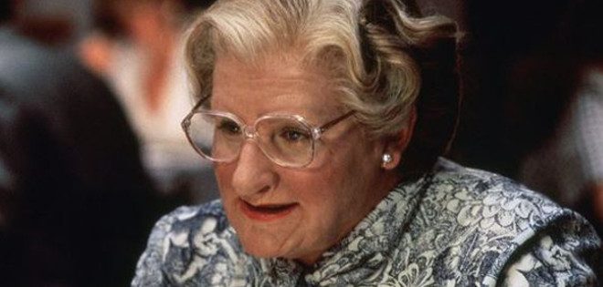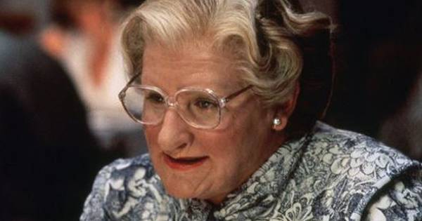 Robin William se disfrazaba de abuelita en esta película familiar en la que interpretaba a un padre divorciado y actor en paro que, para estar más cerca de sus hijos, tomaba esta insólita decisión de disfrazarse y convertirse en la niñera perfecta, Euphegenia Doubtfire.