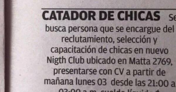 La amenaza de una crisis económica y el hecho de tener que reinventar cada vez más los negocios y puestos de trabajo, ha llevado a un conocido night club de Chile a publicar un aviso para cubrir una particular plaza vacante, que debido a la alta demanda de mujeres buscando trabajo, parece hacerse necesaria: un catador de chicas.