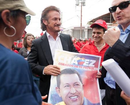 Sean Penn acompaña a Chávez en recorrido de campaña en Venezuela