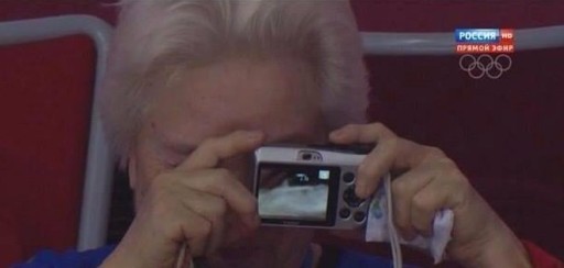 El meteorólogo Bryan Wood publicó en su cuenta una imagen del momento en que una señora quiere tomar una fotografía del partido de hockey entre Rusia y Eslovenia, pero sin querer toma la cámara al revés (apuntando hacia su cara) y termina con una ''selfie'' en donde sólo se ve su ojo.
