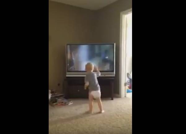 En sala de su casa encontró al niño haciendo flexiones, saltos, planchas, como si se sintiera parte de la película. Todas las acciones de Balboa fueron repetidas por el bebé que no quitaba la vista de tu televisor.