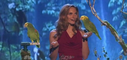El loro deleitó a la audiencia con su actuación. Mira que te parece este simpático pajarito.