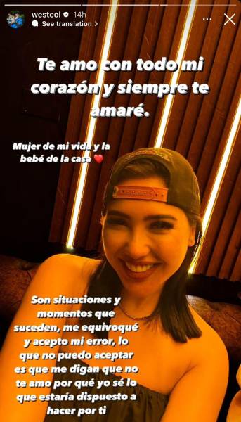 Westcol realizó una publicación en sus redes sociales, donde volvió a pedir perdón a Aida, al mismo tiempo que explicó sobre la infidelidad que lo acusaron.