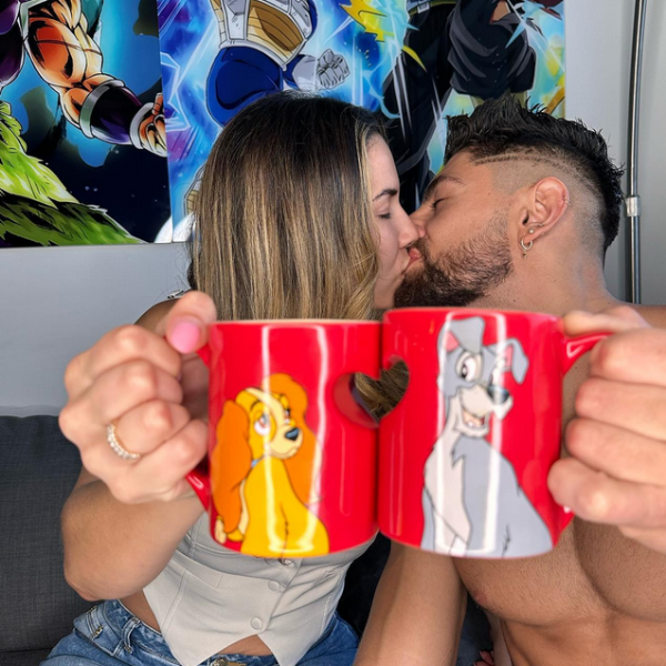 Beta y la Caramelo compartieron tres fotos en las que aparecen besándose. En dos de ellas sostienen dos jarros con las figuras de la popular película de Disney, 'La dama y el vagabundo'.