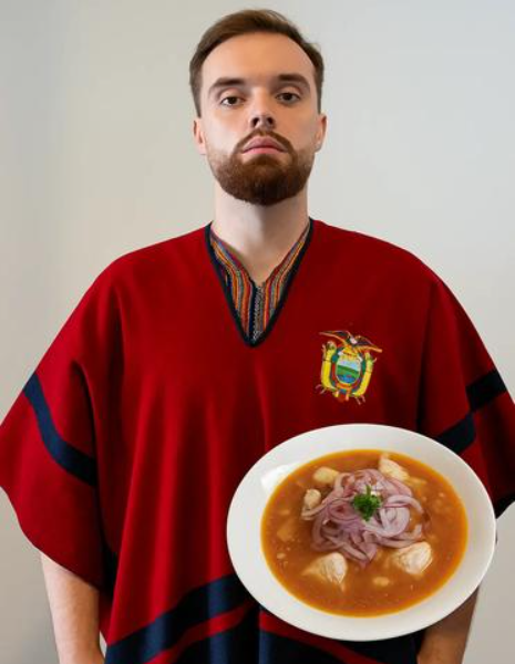 Ibai con un poncho ecuatoriano y un encebollado( )