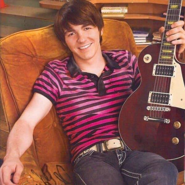 Drake Bell sosteniendo una guitarra eléctrica, durante las grabaciones de Drake & Josh.( )