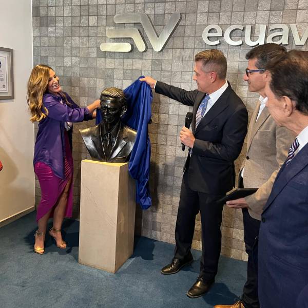 El medio de comunicación en el que laboró por más 50 años develó un busto de su imagen que fue colocado en la entrada principal de las instalaciones de Ecuavisa, en el Cerro del Carmen, centro de Guayaquil.