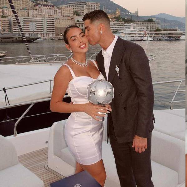 Georgina Rodríguez y Cristiano Ronaldo juntos en un barco y muestran el anillo de compromiso.( )