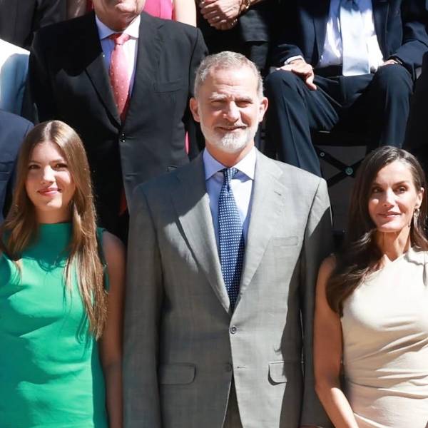Para la ocasión, la infanta eligió un vestido verde agua sin mangas y unas bailarinas beige con detalle joya. La reina Letizia, por su parte, repitió un vestido nude de escote asimétrico de Mango que ha usado en otras ocasiones, mientras que el Rey, como es habitual, presidió la audiencia con sobriedad.