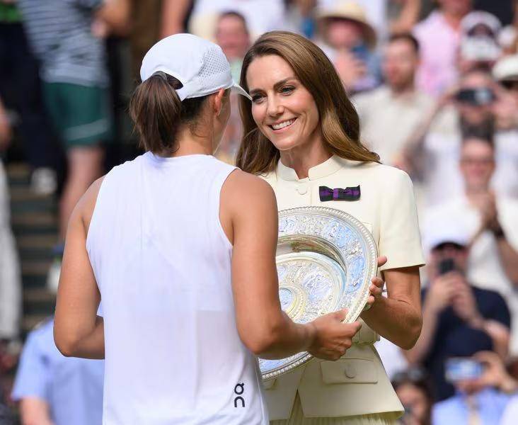 Durante el encuentro, la princesa presenció la contundente victoria de la polaca Iga Świątek sobre la estadounidense Amanda Anisimova, con un marcador de 6-0 y 6-0. Tras el partido, Kate se acercó a la finalista derrotada para consolarla con un mensaje de aliento: “Deberías estar muy orgullosa”, le dijo a la joven entre lágrimas. El gesto fue aplaudido por quienes siguen de cerca la labor humanitaria y empática de la futura reina.