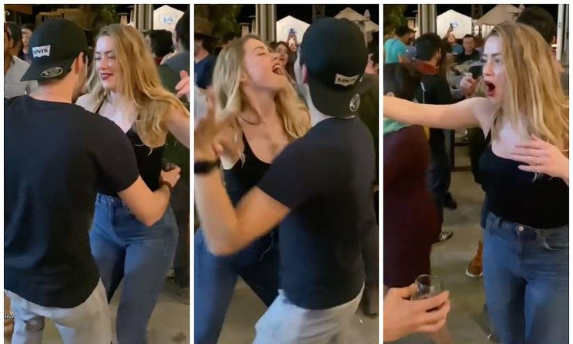 Imágenes referenciales a Amber Heard y el viral video bailando cumbia.( )