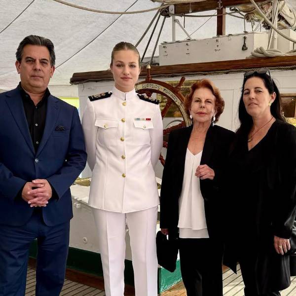 En una fotografía compartida por la Casa Real en Instagram, la princesa Leonor aparece vestida con su uniforme blanco, mientras que Patricia Llosa y su hija Morgana llevan prendas negras en señal de duelo. Gonzalo Vargas Llosa, hijo del escritor, luce un traje azul marino con camisa negra.