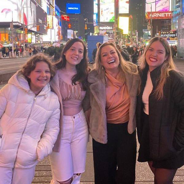 Úrsula Strenge y sus hijas en Times Square. ( )