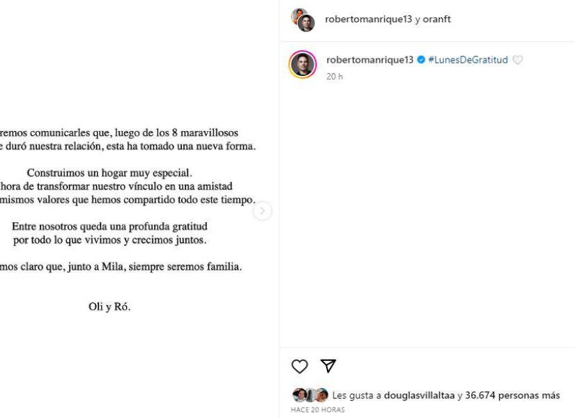 Este es el emotivo vínculo que aún une a Roberto Manrique con Oliver Ranft tras su separación